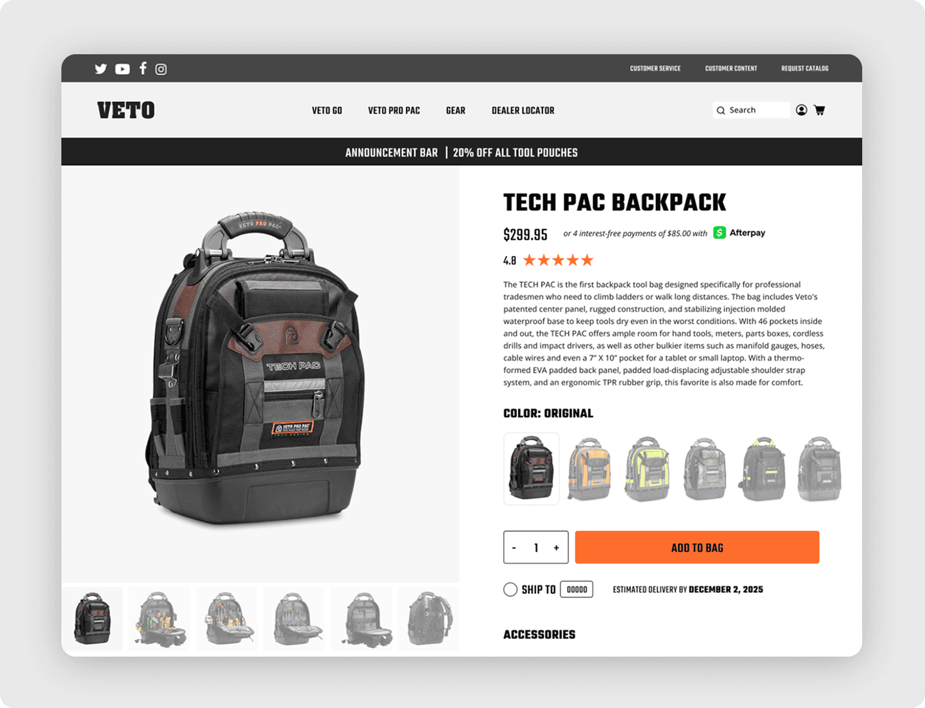 The redesigned site creates a scalable digital foundation aligned with Veto Pro Pac’s established brand identity. Once launched, it’s positioned to significantly improve usability, brand consistency, and conversion performance as the company expands its e-commerce efforts.