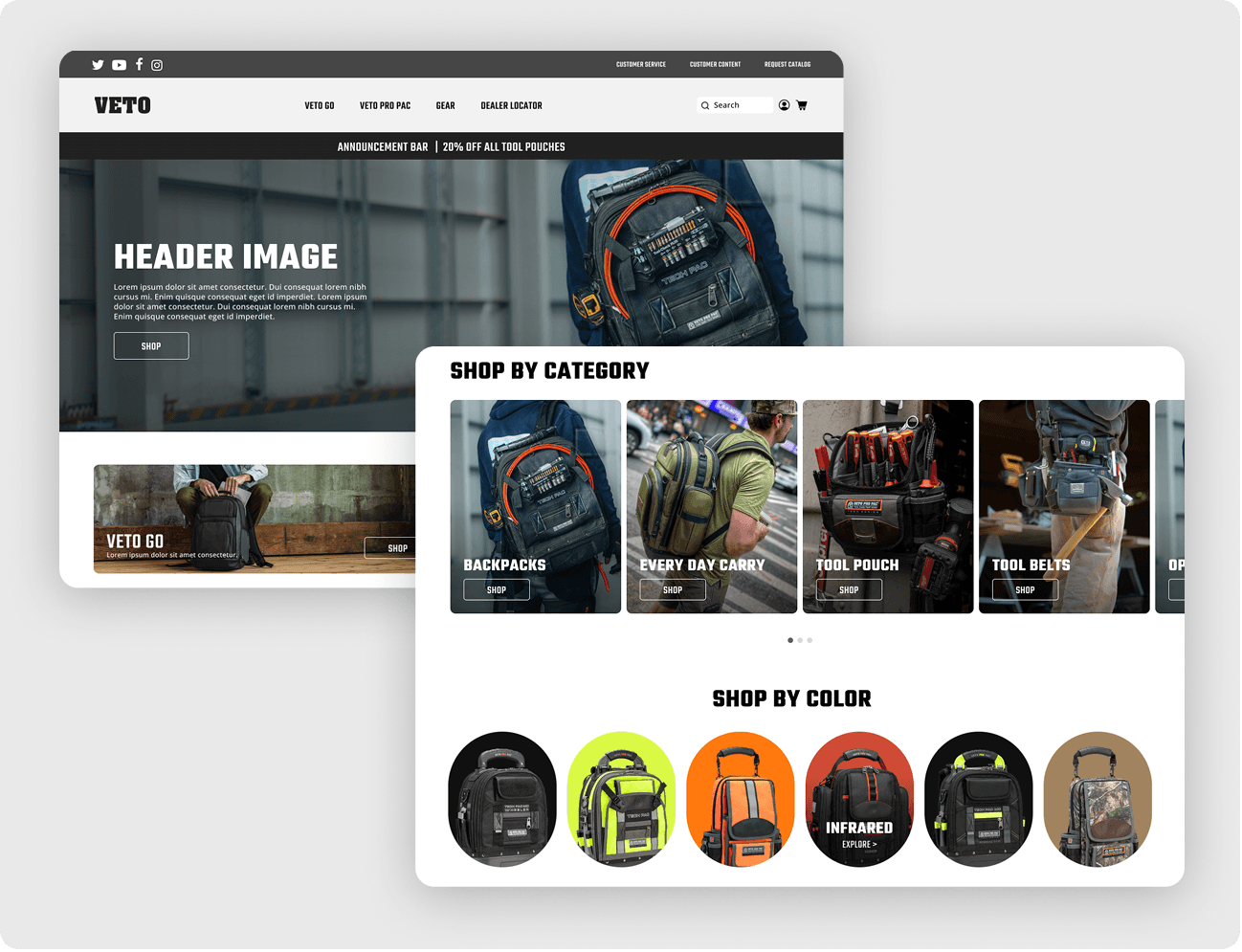 Led a full website redesign for VetoProPac.com to support the brand’s shift toward scalable e-commerce growth. The new site is currently under internal review, with a target launch planned for Q4 2026.
